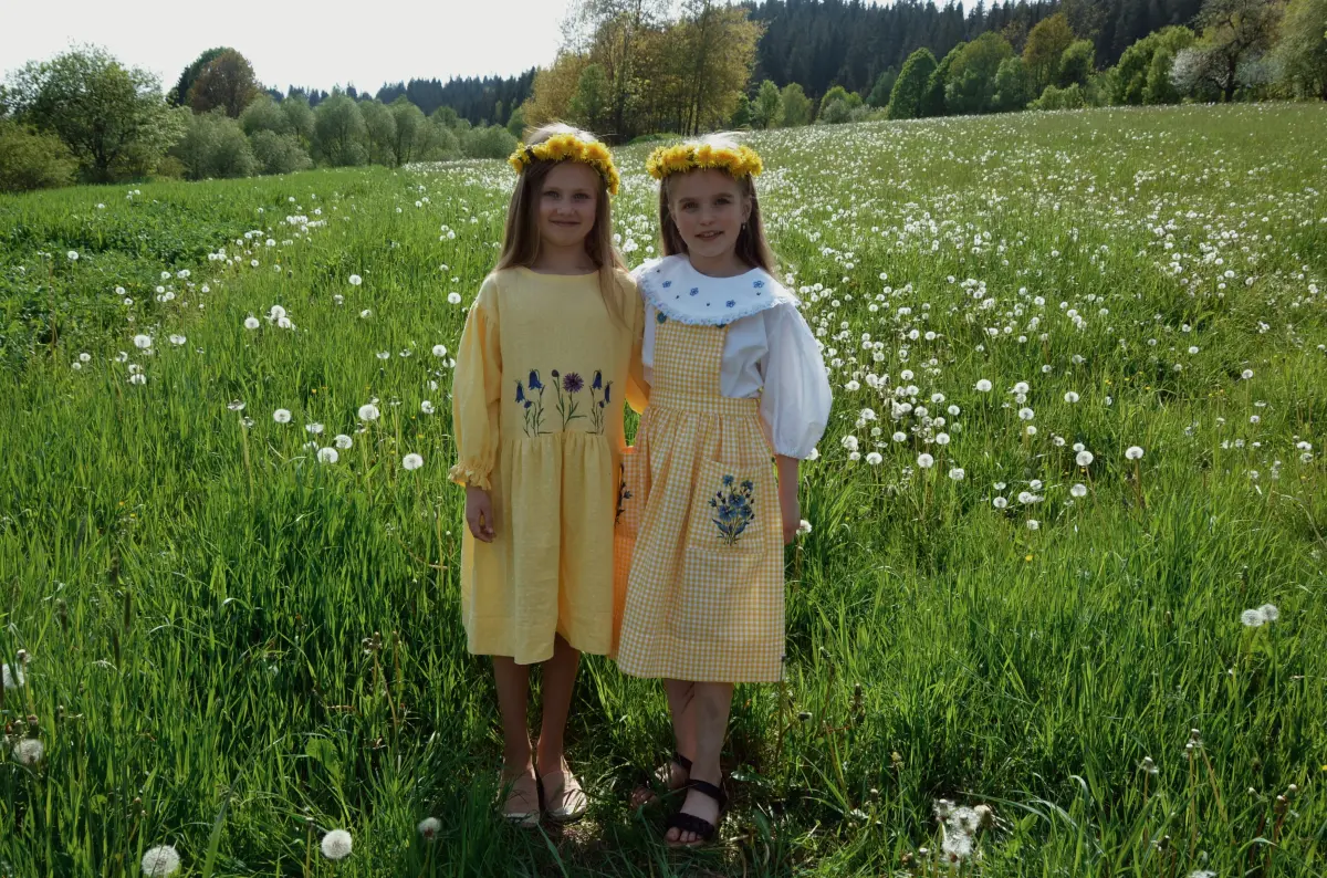 Tieto očarujúce zásterošaty v žltobielom károvanom vzore sú inšpirované tradíciou a prírodou, aby priniesli deťom pohodlie, voľnosť pohybu a kúsok nostalgie. Sú navrhnuté tak, aby rástli spolu s vaším dieťaťom – vďaka gumičke v páse a nastaviteľným trakom na gombíky ich dievčatká môžu nosiť dlhšie. Predný diel zdobia praktické vrecká s krásnou výšivkou modrých kvetov, ktoré dodávajú šatám jedinečný šarm.